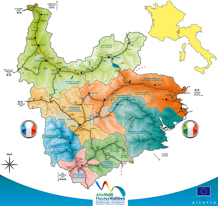 Ce vaste territoire de la Haute Vallées est fort d'une histoire commune liée aux Escartons, à la langue occitane et à la domination française historique des vallées. L'homogénéité géologique et géographique des massifs montagneux des Alpes Cottiennes a également déterminé l'affinité entre le paysage et l'environnement, et la réalité socio-économique des territoires est également très similaire : sur les deux côtés des Alpes, elle est basée sur un hiver touristique important dans la partie supérieure des vallées et la présence d'industries et d'artisanat dans les fonds de vallées.