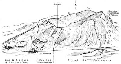• écaille parautochtone de Plan de Phazy dont la remontée au travers des nappes est probablement due à la faille de la Durance